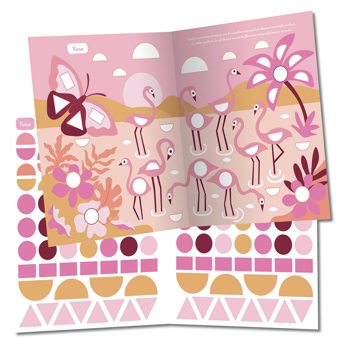 Un cahier de plus de 1000 gommettes de formes géométriques qui servent à compléter des décors détachables.