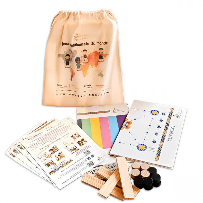 Le jeu « 4 Jeux du Monde » d’Envoyajeux vous permet de découvrir quatre jeux traditionnels de différents pays. Amusez-vous en famille tout en explorant des cultures à travers des règles simples et des défis passionnants !