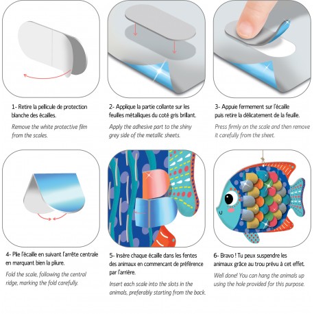 Un coffret qui permet aux enfants de créer de jolis animaux 3D, tout brillants grâce aux écailles à métalliser.