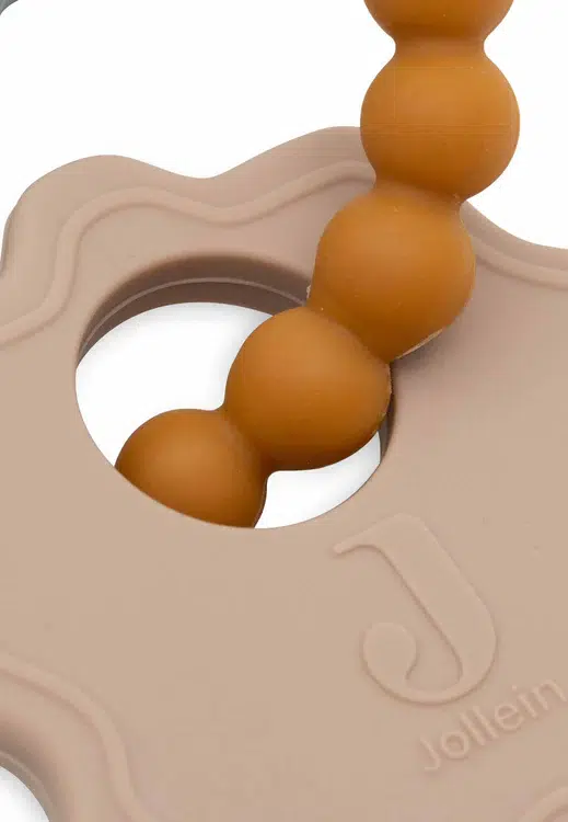 Ce porte-clés en silicone aux couleurs Wild Rose, Sea Green, Caramel et Nougat est un jouet parfait pour les petits qui aiment porter les choses à la bouche.
