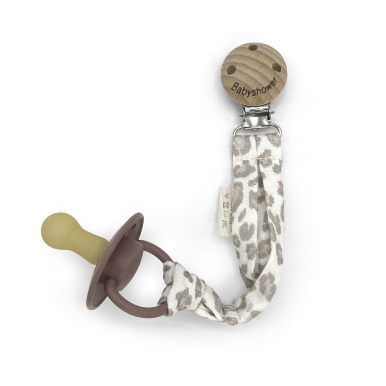Attache tétine gaze de coton et léopard personnalisable