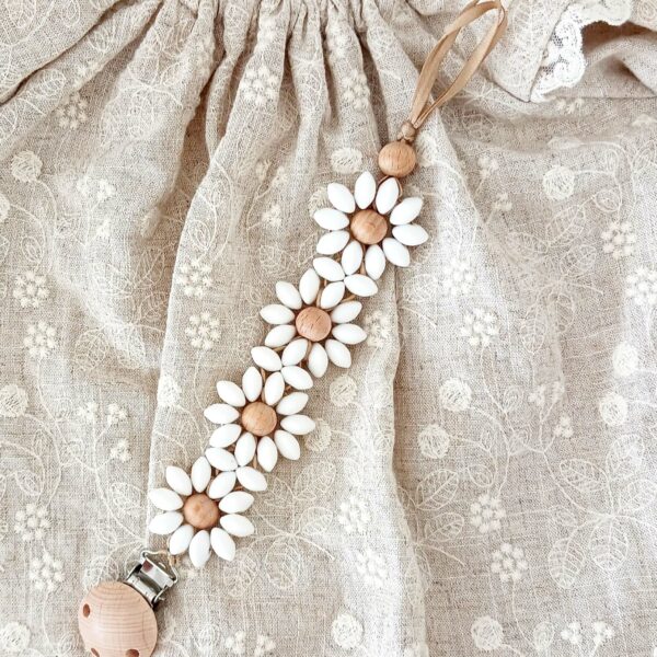 Attache tétine marguerite blanche