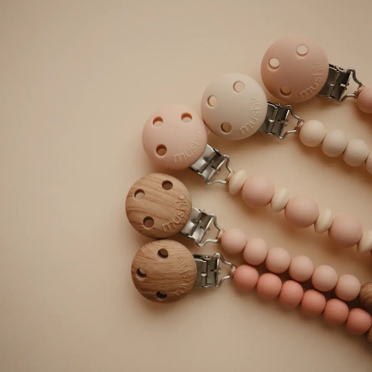 Le clip de sucette en silicone Mushie offre durabilité, fonction et simplicité aux familles en déplacement. Fabriqué à partir de silicone 100 % de qualité alimentaire, notre clip est doté d’un fermoir en silicone en faux bois qui apporte une touche moderne à un favori traditionnel. Avec une simple pile de perles en silicone en deux couleurs complémentaires, le clip Eva offre une touche sophistiquée à vos accessoires de sucette. Le clip est facile à nettoyer et aide à garder les articles apaisants à portée de main pour les plus petits.