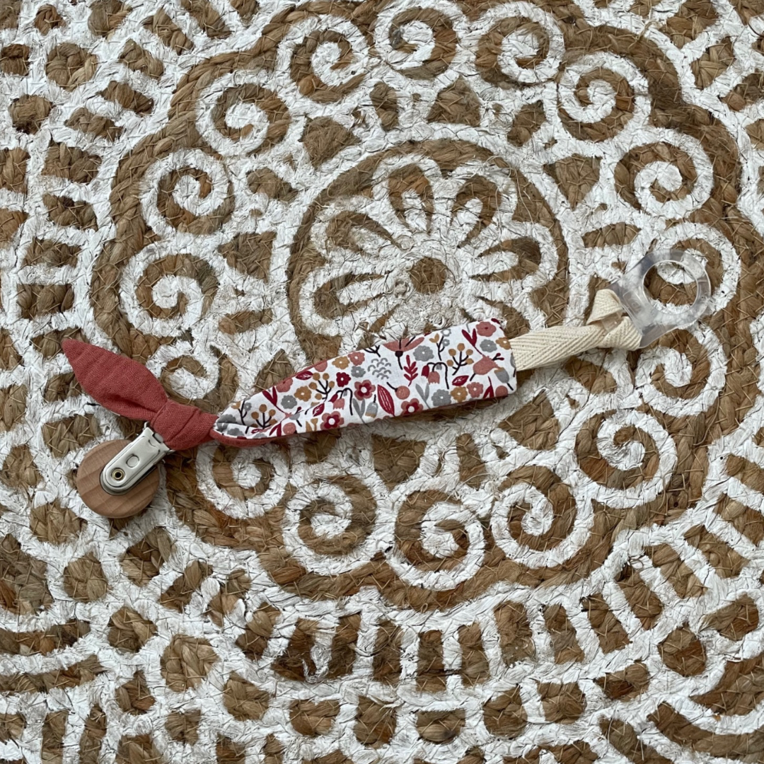 Attache Tétine vieux rose / liberty