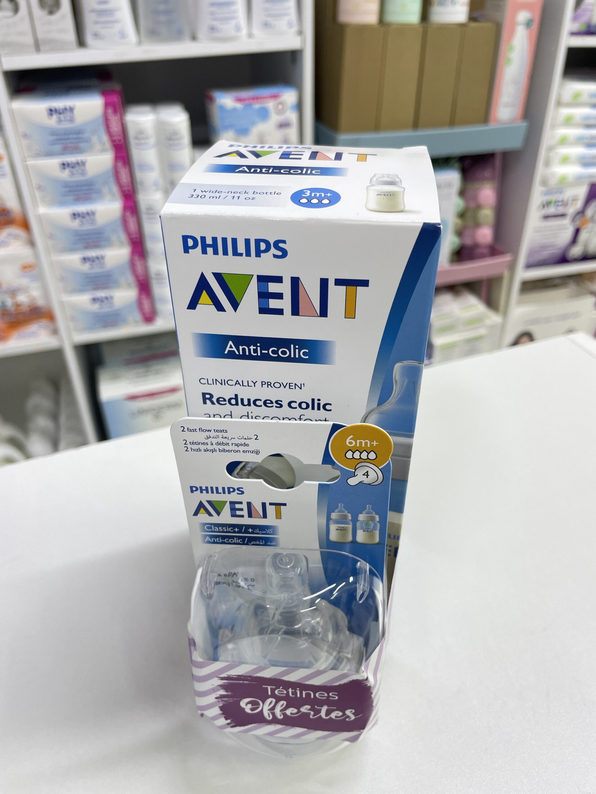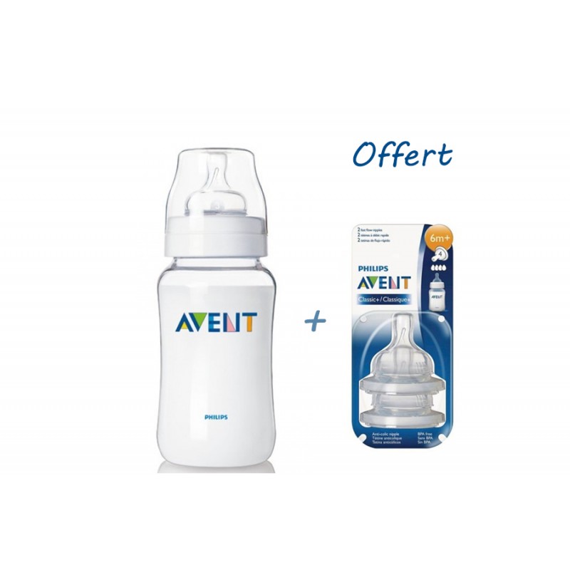 AVENT BIBERON 330ML SANS BPA ACHETE + AVENT 2 TETINES CLASSIC -6M+ OFFERTES