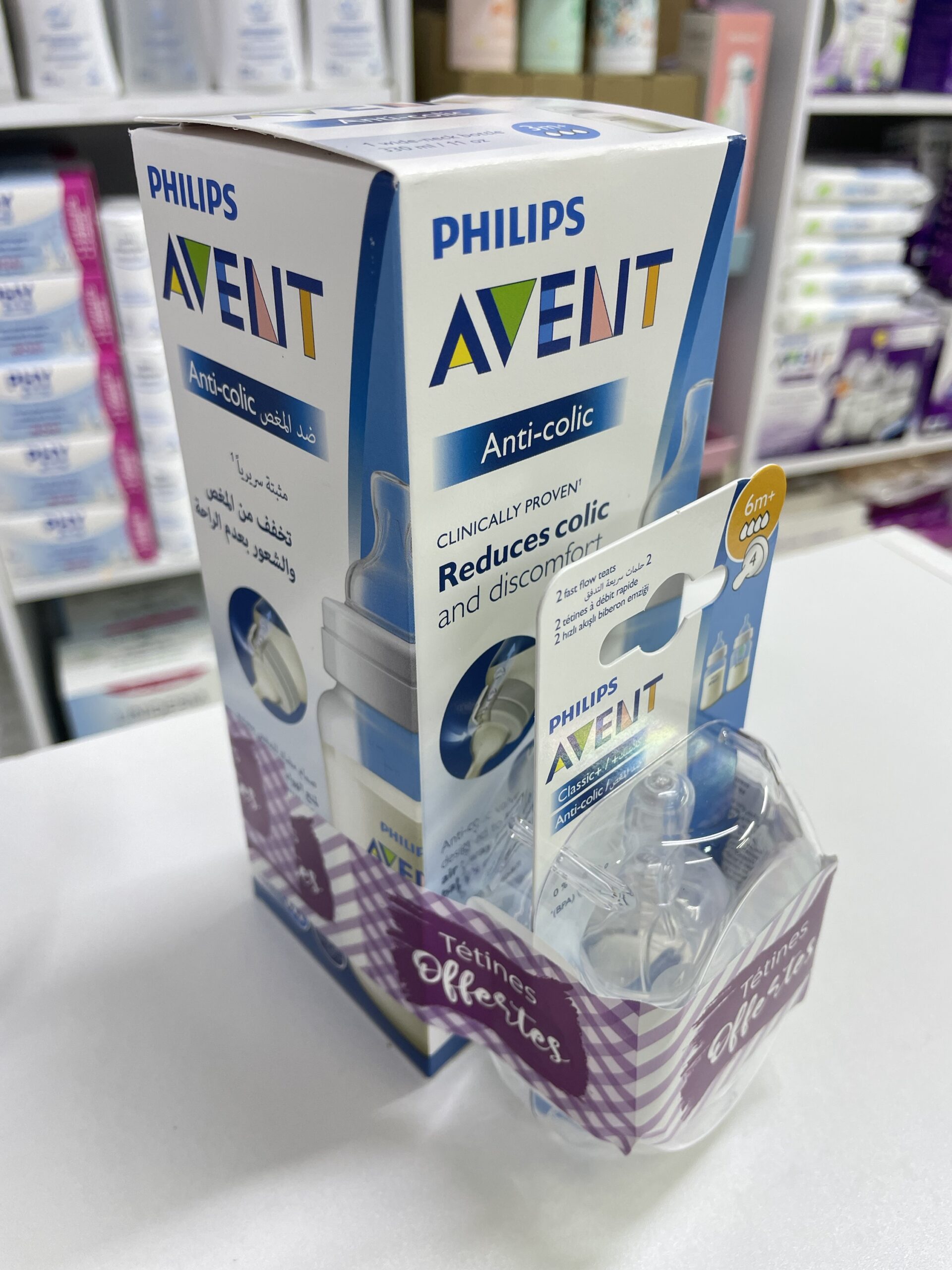 AVENT BIBERON ANTI COLIC 125 ML ACHETE + AVENT 2 TETINES CLASSIC -6M+ OFFERTES