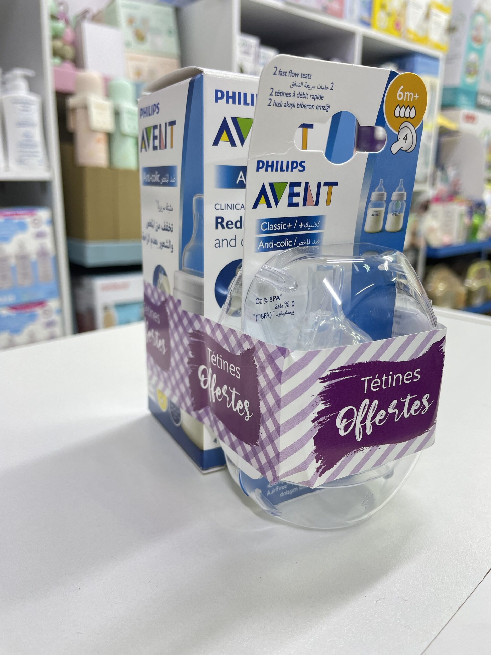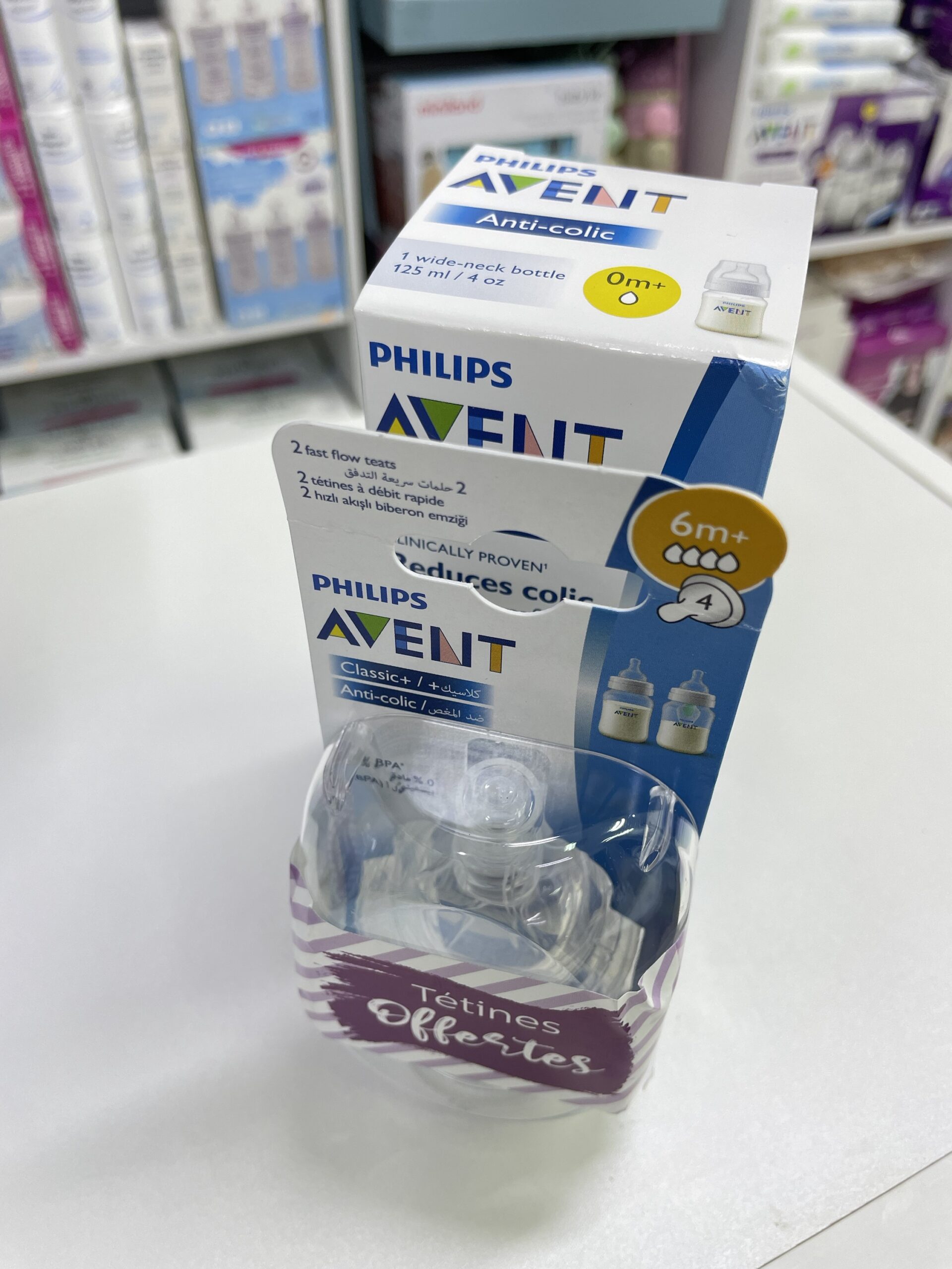 AVENT BIBERON ANTI COLIC 125 ML ACHETE + AVENT 2 TETINES CLASSIC -6M+ OFFERTES