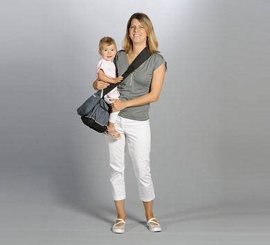sac à langer/porte bébé (bleu grisé) pour que papa ou maman porte bébé sans maux de dos