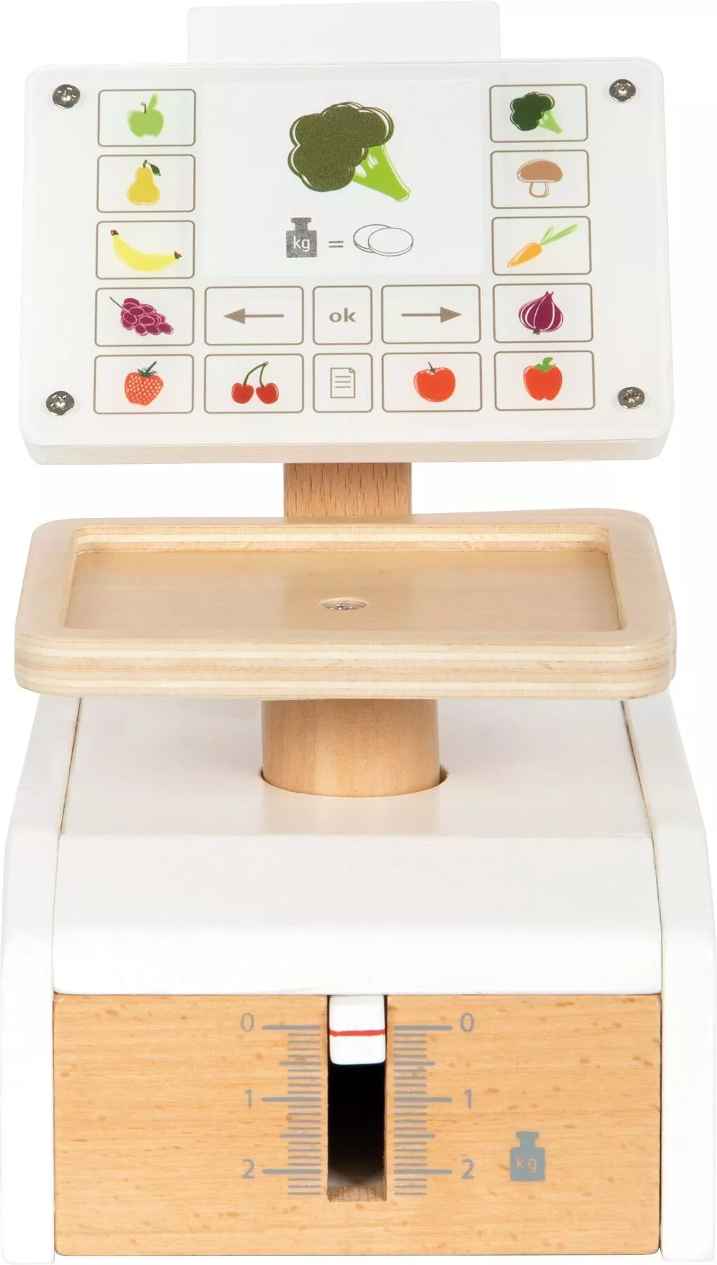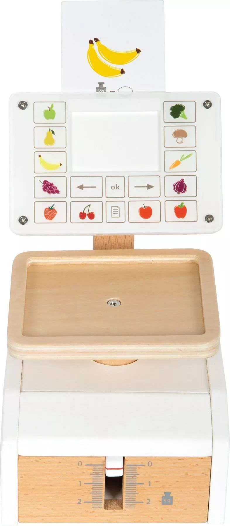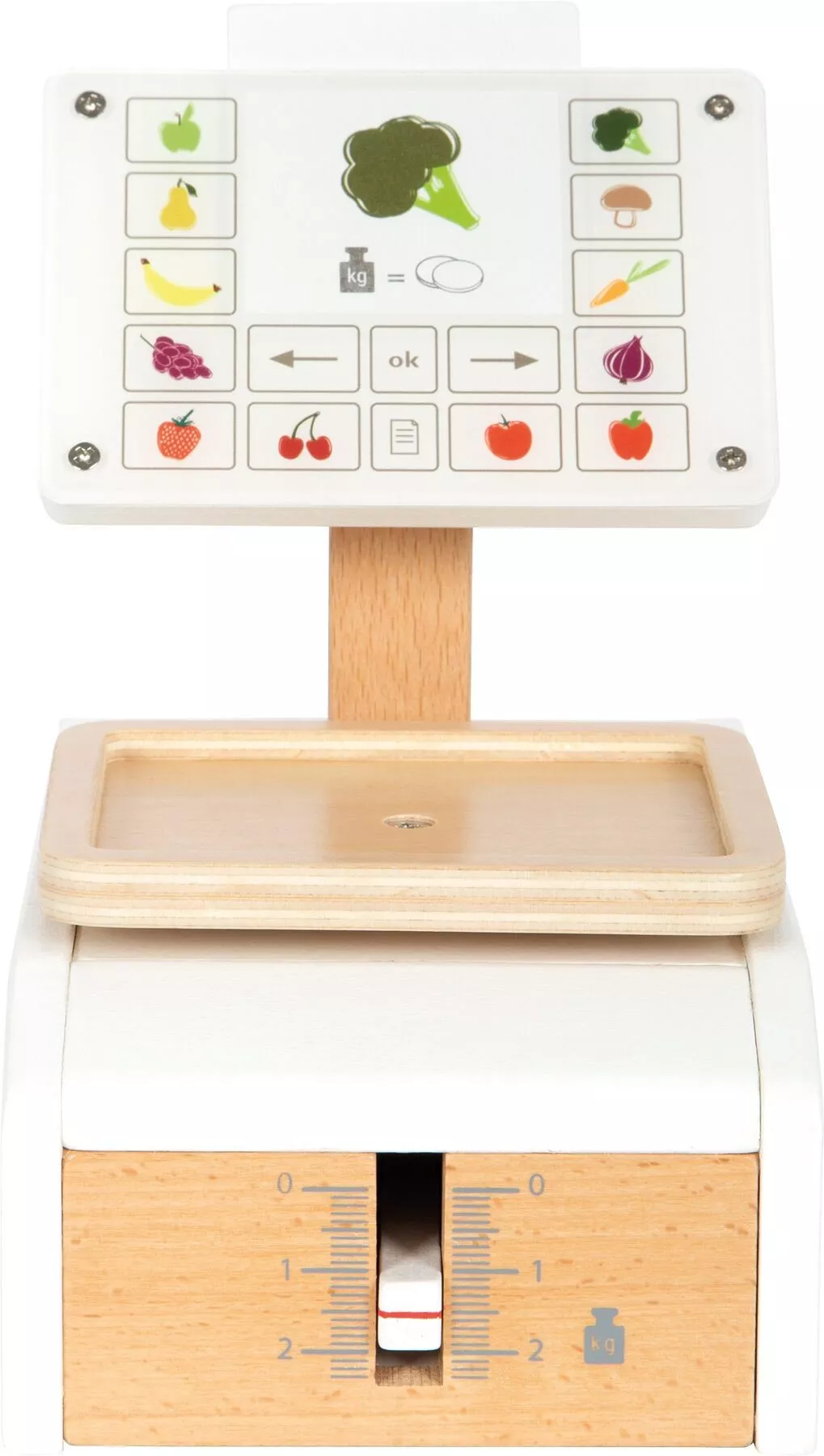 Cette balance pour enfants en bois avec une grande surface de pesée est l’accessoire idéal pour peser les aliments ludiques dans le magasin ou dans la cuisine des enfants.