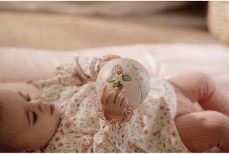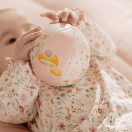 Grâce à son diamètre de 10 cm env., les petites mains peuvent parfaitement la saisir et la rouler. Elle est réalisée dans le thème Fairy Garden coloré.