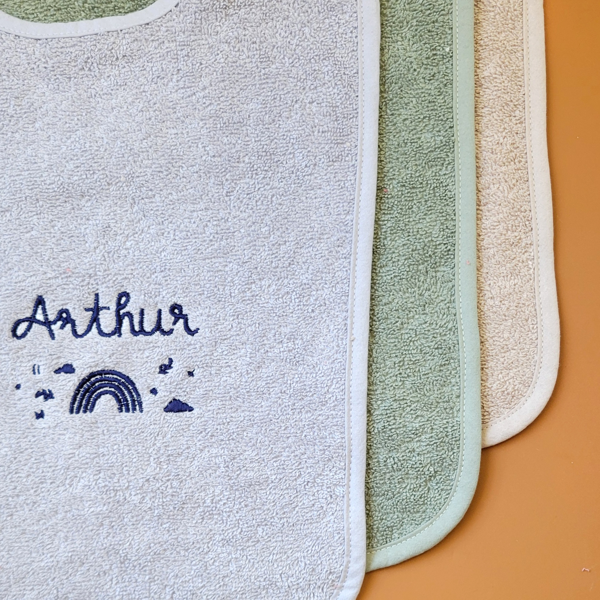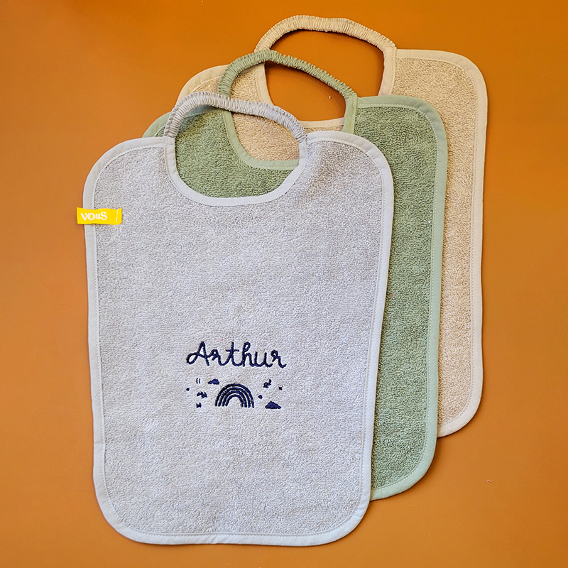 Bavoir éponge élastiqué brodé