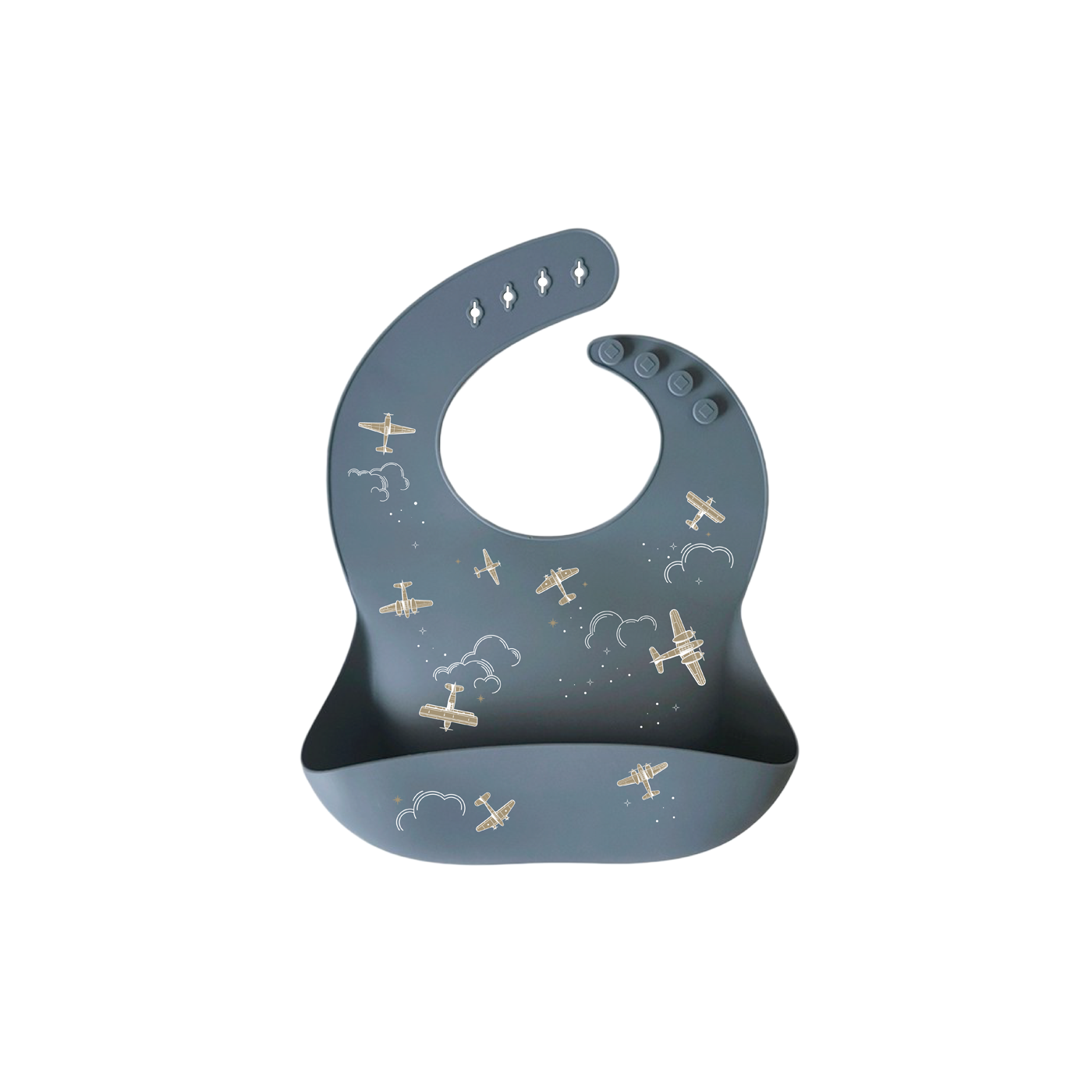 Ce bavoir en silicone aux doux motifs avion sera l’allié repas de votre enfant et ravira les parents.