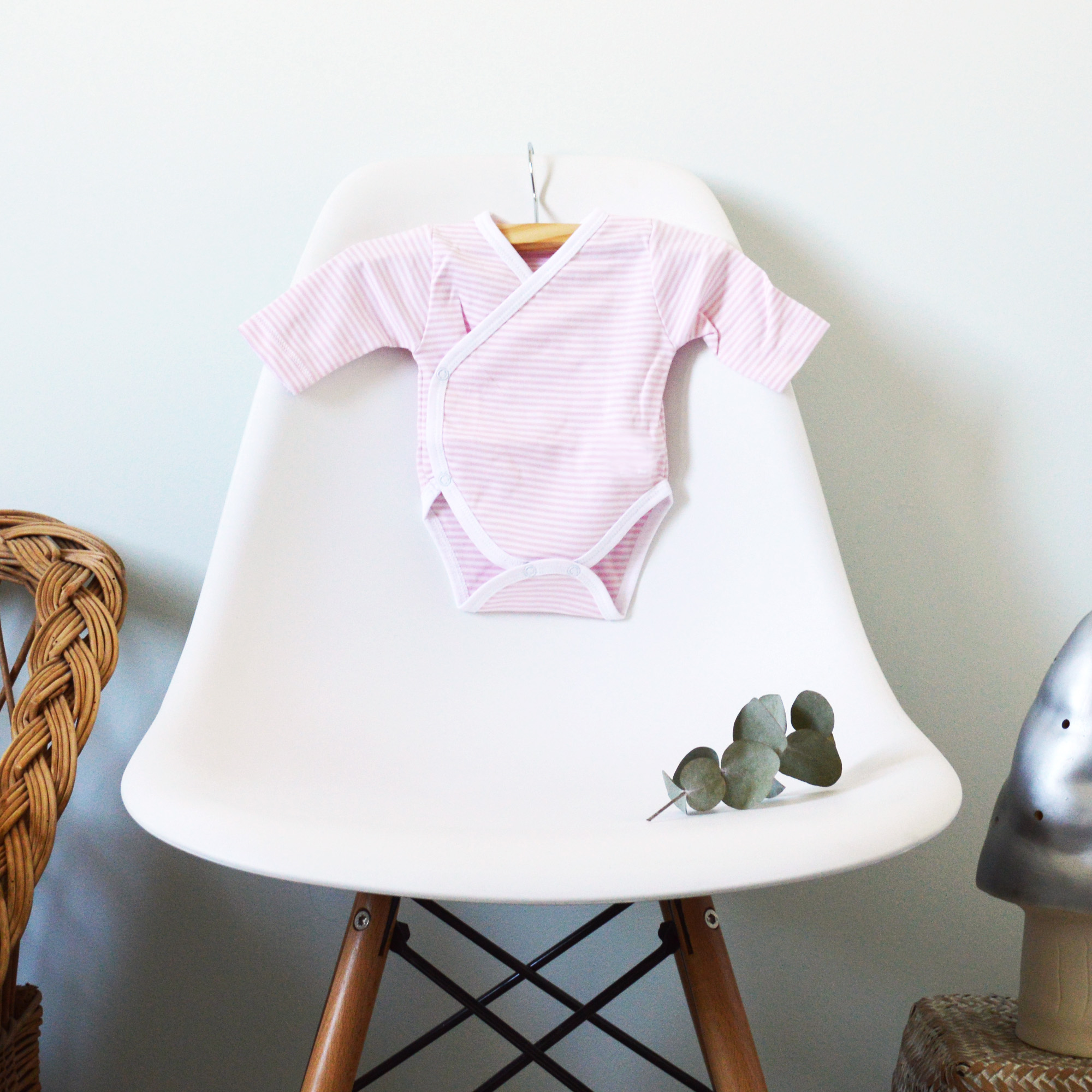 * body blanc bordure grise (ou blanc rayures roses selon stock dispo) en coton pima