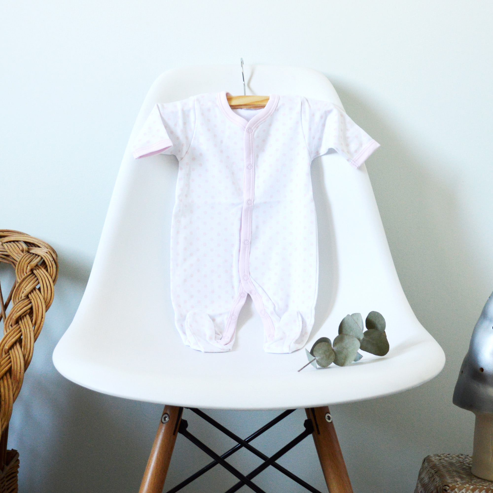 * pyjama blanc pois roses (ou pois gris selon stock dispo)en coton pima