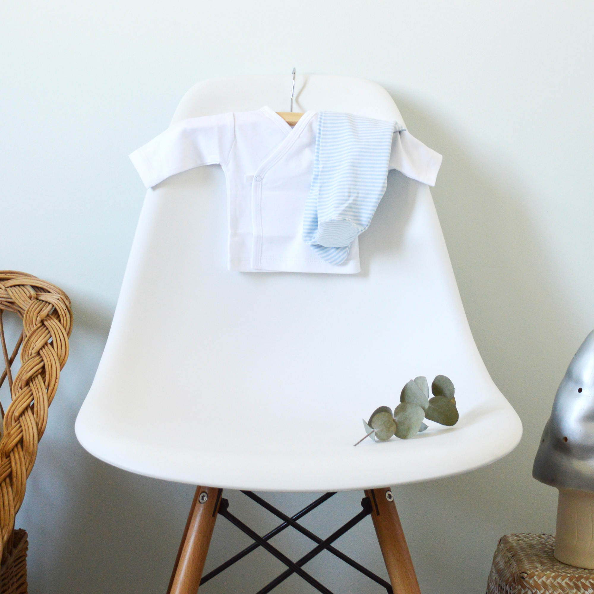 Des petits vêtements pour les bébés en-dessous de 3 kg. Ils s’ouvrent tous par des pressions devant.