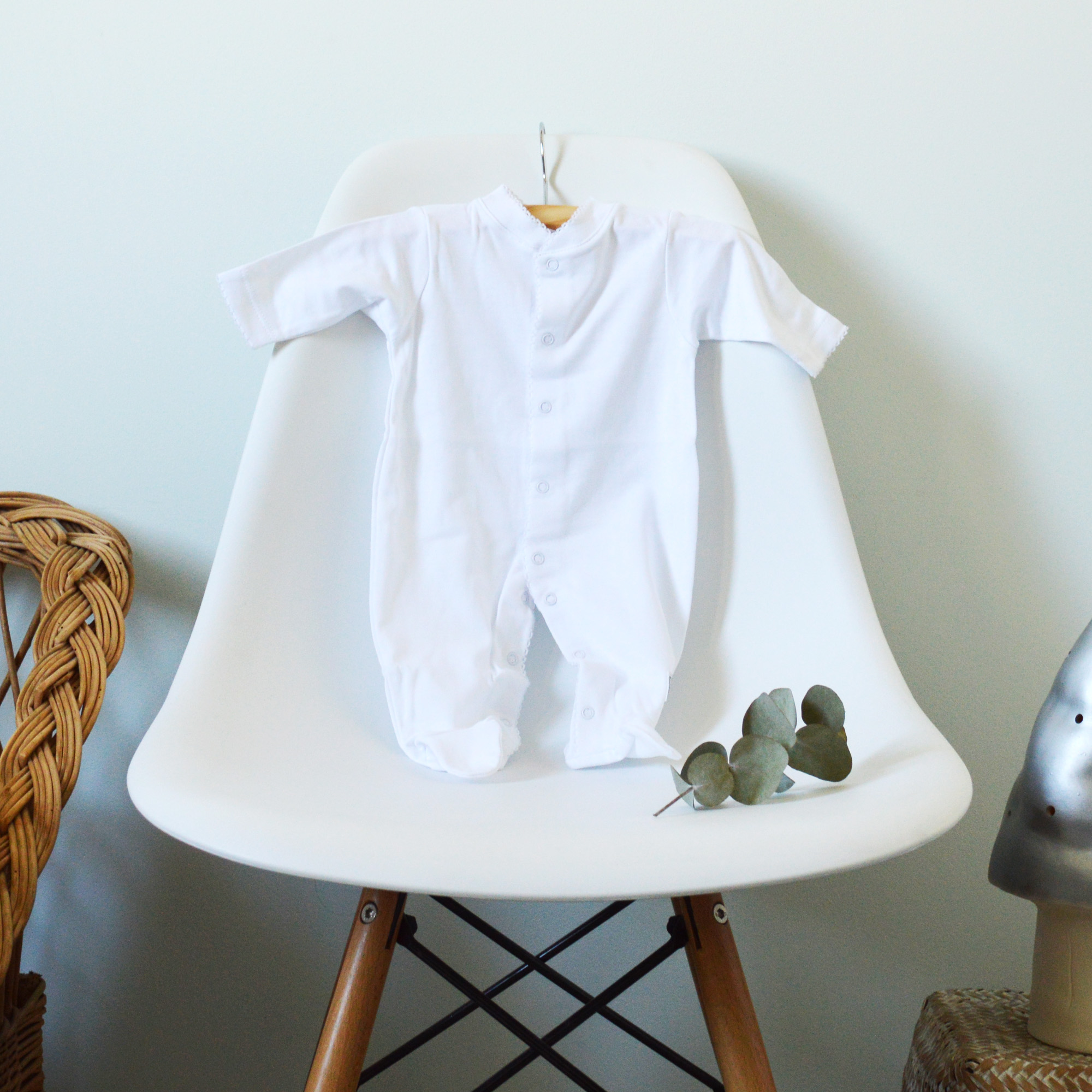 * pyjama blanc (ou blanc bordure grise ou blanc rayures grises selon stock dispo) en coton pima