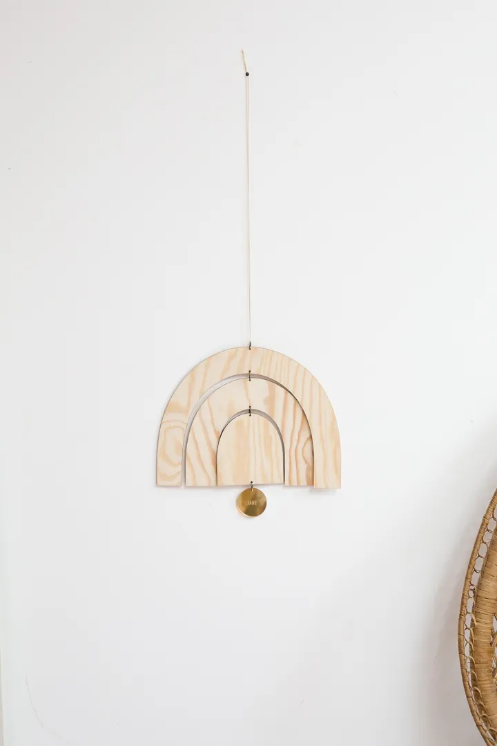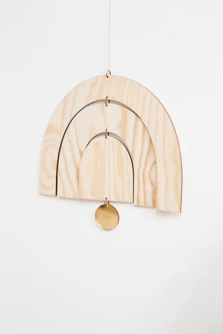 Ce mobile décoratif en bois en forme d’arc-en-ciel pour la chambre de votre enfant, il se termine par un petit médaillon en plexi miroir afin d’ajouter une petite note chic à votre décoration. Le médaillon en plexi se personnalise du prénom de l’enfant ou d’un petit mot doux de votre choix et il est disponible en deux couleurs, doré ou rose, c’est vous qui décidait ! Ce mobile Rainbow est un objet avec une symbolique toute douce qui convient à toutes les chambres d’enfant, et pourquoi pas dans votre salon aussi ! Matériaux : Bois (pin) et miroir acrylique extrudé.…