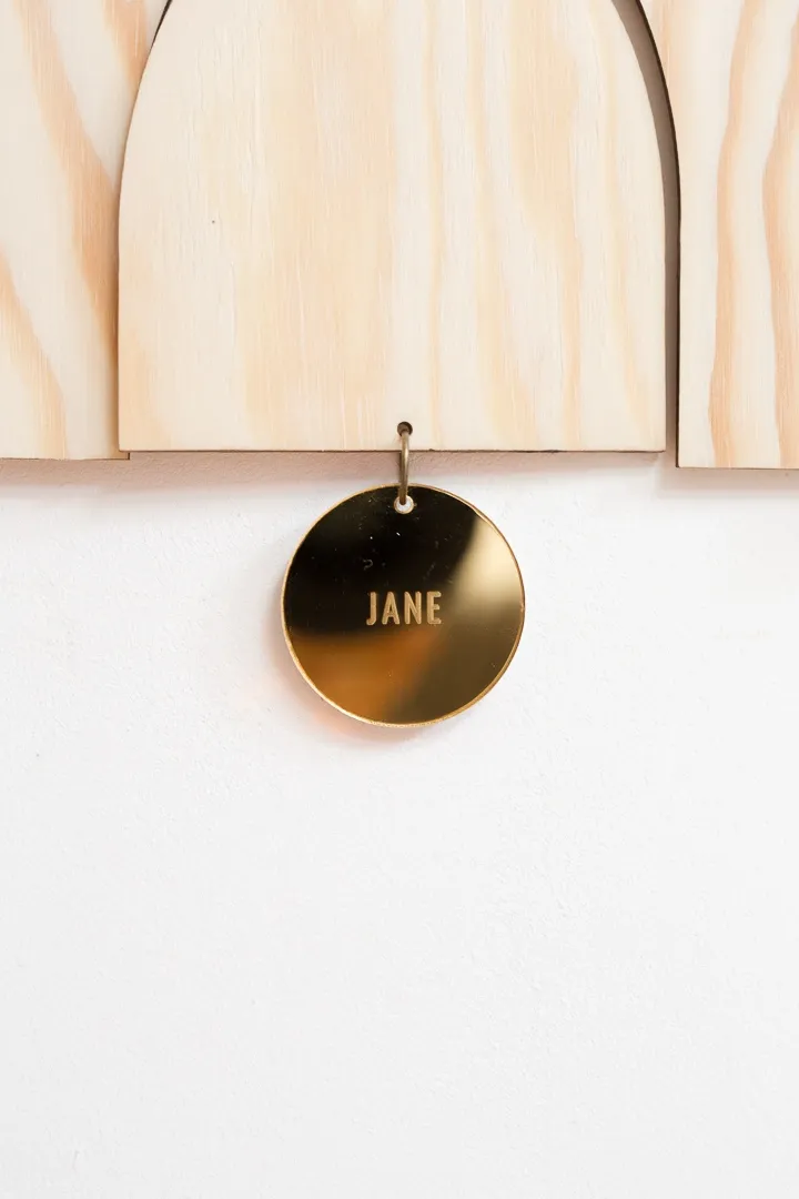 Le médaillon en plexi se personnalise du prénom de l’enfant ou d’un petit mot doux de votre choix et il est disponible en deux couleurs, doré ou rose, c’est vous qui décidait !