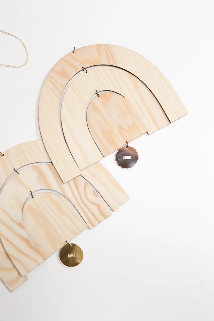 Ce bijou de mur en bois en forme d’arc-en-ciel pour la chambre de votre enfant, il se termine par un petit médaillon en plexi miroir afin d’ajouter une petite note chic à votre décoration.