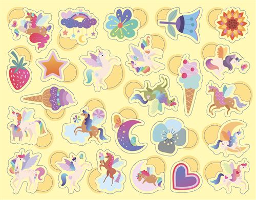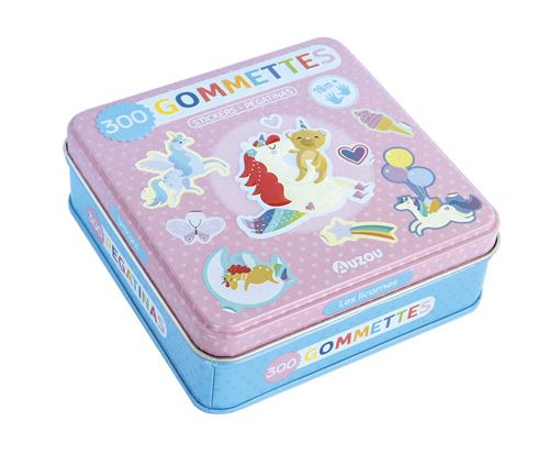 Découvre 300 gommettes sur le thème des licornes dans une belle boîte en métal. Garde cette boîte pour ranger tes gommettes et tous tes trésors !