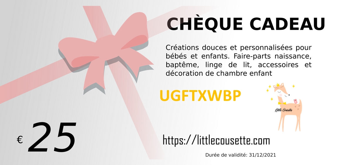 Bon cadeau de 25 euros sur la boutique Little Cousette