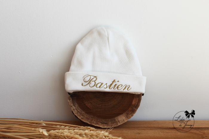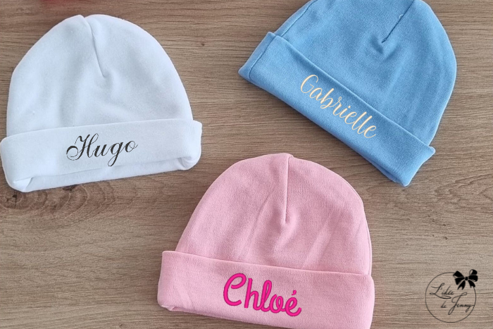 Il ou elle va arriver ? : votre enfant, votre filleul(e), votre petit-fils ou petite-fille, va pousser ses premiers cris et vous remplir de joie. Pour lui faire plaisir, pensez au bonnet personnalisé brodé, c’est toujours un cadeau de naissance apprécié des petits comme des grands. Il ne vous reste plus qu’à choisir la plus belle police d’écriture pour orner ce bonnet à personnaliser !