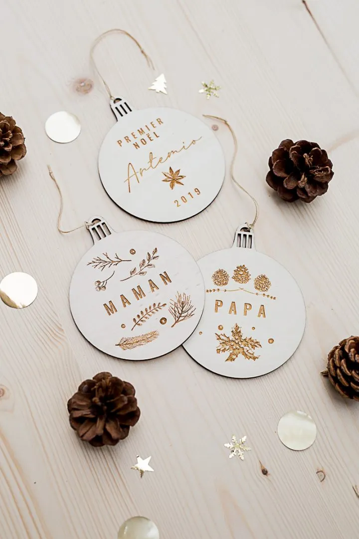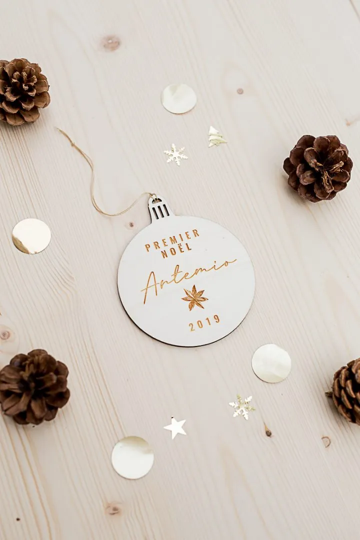 HoHoHo voici le temps de Noël qui approche et la décoration du sapin pour embellir sa maison pendant ce temps de fêtes ! Notre boule de Noël « Mon Premier Noël » est un chaleureux symbole et souvenir du premier Noël de votre tout petit. Dimension : 9cm de diamètre Matière : bois peuplier Délai de fabrication : 48H en semaine Délai de livraison : 72H en lettre suivie