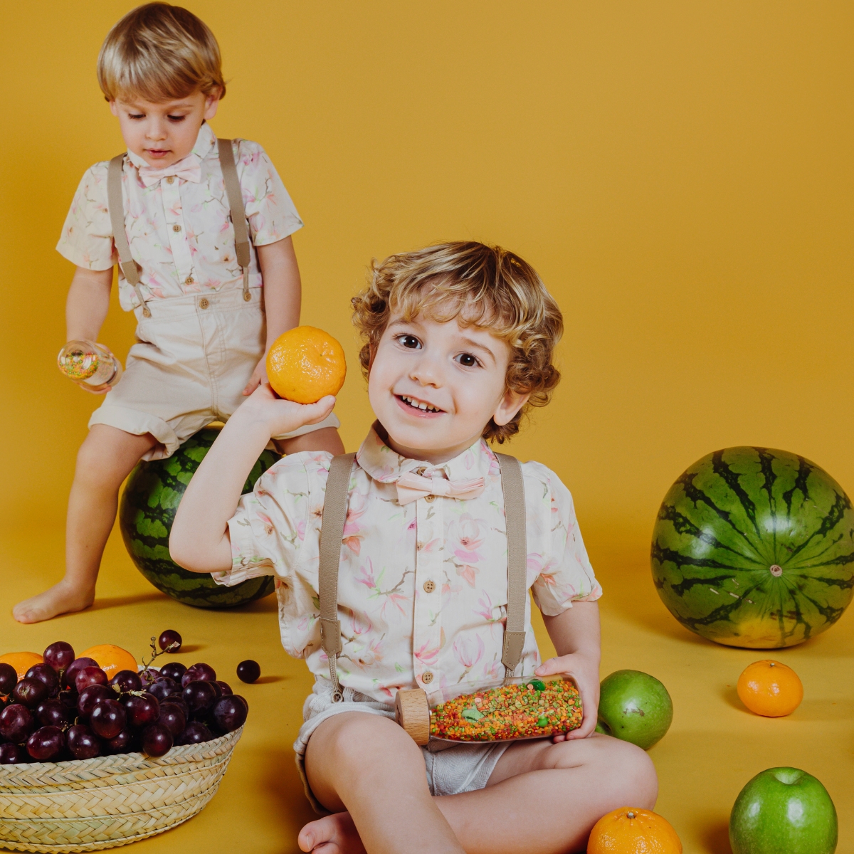 – Il suffit de l’agiter et… La récolte est là ! Mandarines, raisins, bananes, fraises ?
