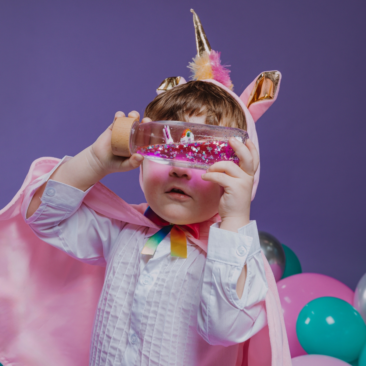 Notre nouvelle bouteille Move avec effet de loupe est une invitation à plonger dans un monde magique de rêves et de couleurs. Secoue-la, regarde de plus près et tu découvriras où mène l’arc-en-ciel peint dans le ciel par la légendaire licorne des contes de fées.