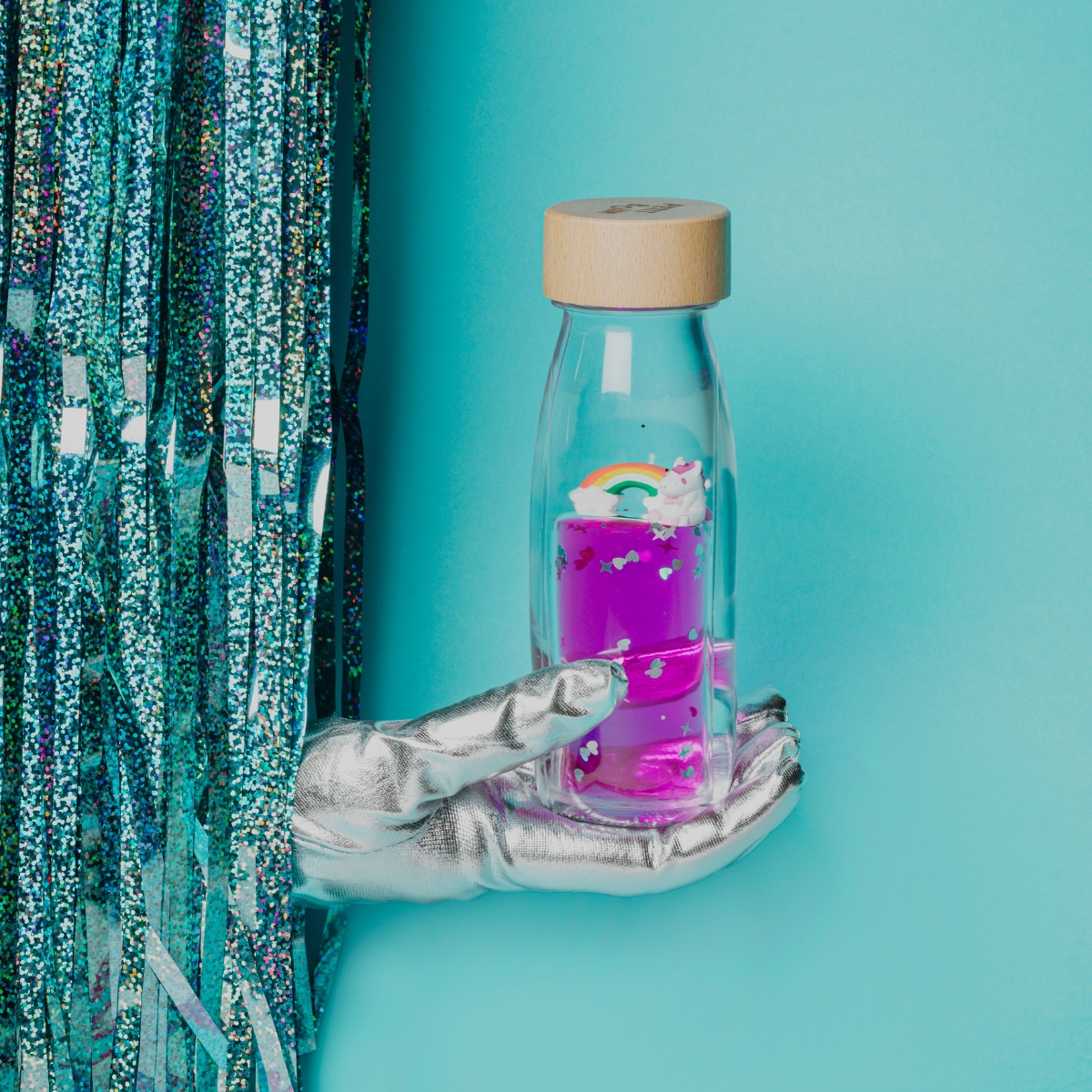 La nouvelle bouteille sensorielle Move Arc en ciel de la marque Petit Boum émerveillera votre tout-petit.
