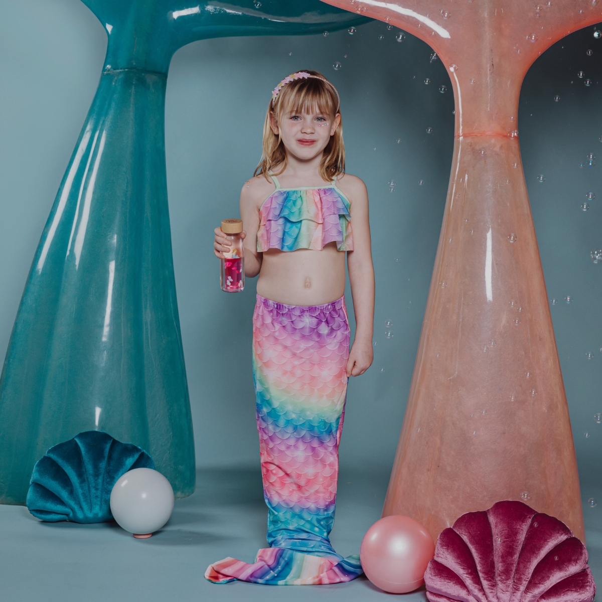 Cette nouvelle bouteille Move à effet loupe cache un univers marin plein de surprises. Secoue-la, jette un coup d’Å“il à l’intérieur et découvre les merveilles des fonds marins. Au milieu des bulles, des mollusques et des paillettes, vous verrez nager la protagoniste de cette histoire, notre belle sirène. Est-ce vrai ce que l’on dit de sa voix énigmatique ?