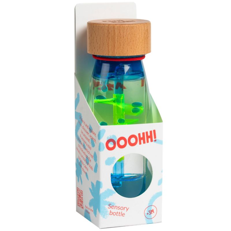 C’est tout un univers de découvertes que propose Petit Boum afin de développer les sens de votre bébé. Les bouteilles activent l’imagination, la créativité et la curiosité. Chaque bouteille contient des éléments liquides et/ou solides. De jolies couleurs, des sons, des animaux… sont à découvrir pour le plus grand plaisir de votre enfant. Il s’amusera à la faire rouler, la secouer et s’émerveillera devant les éléments qui bougent à l’intérieur.