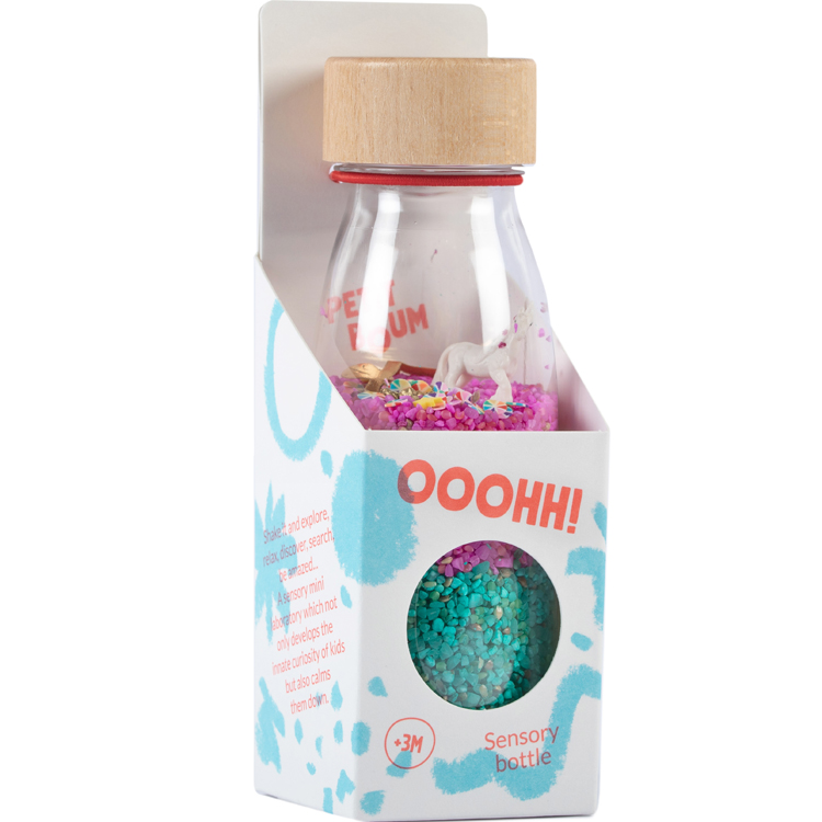 La bouteille sensorielle sound Licorne de la marque Petit Boum émerveillera votre tout-petit.