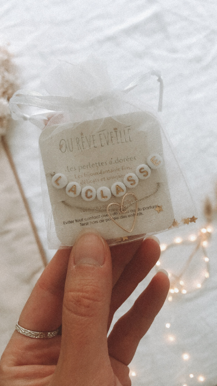 La finesse et la délicatesse de ce joli bracelet en perles avec un petit cœur, signature d’Au rêve éveillé, saura ravir les maîtresses/atsem en cette fin d’année.