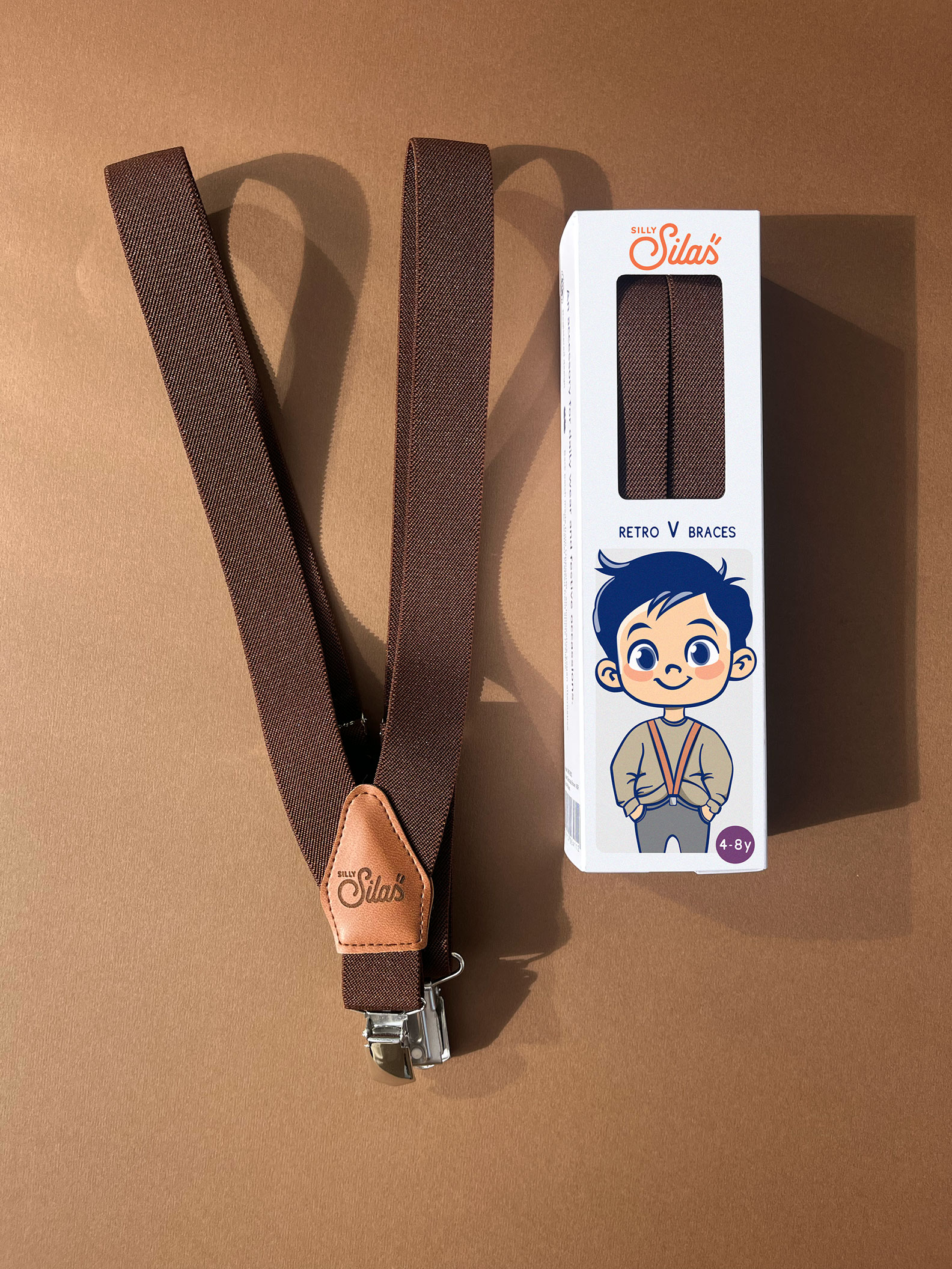 Les bretelles enfant / marron sont ajustables et conviennent aux enfants de 4 Ã 8 ans.