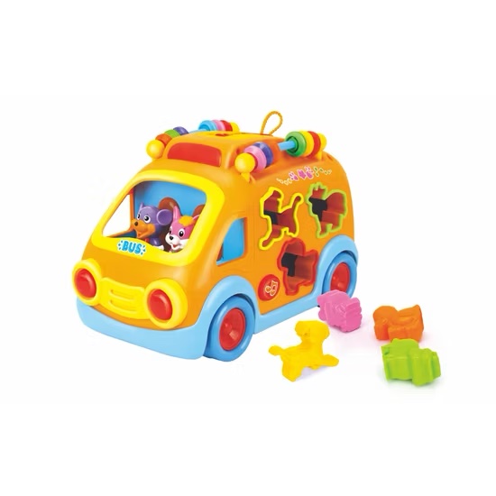 Bus de tri de formes Le bus de tri de formes est un excellent jouet permettant aux bébés et aux tout-petits d’acquérir des compétences de base en résolution de problèmes et d’apprendre différentes formes, couleurs et animaux. Caractéristiques : Apprenez les formes et les animaux