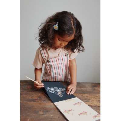 Équipé d’un crayon en bambou adapté, vos enfants n’auront qu’à gratter les pages de leur choix pour faire apparaitre des dessins colorés et joyeux.