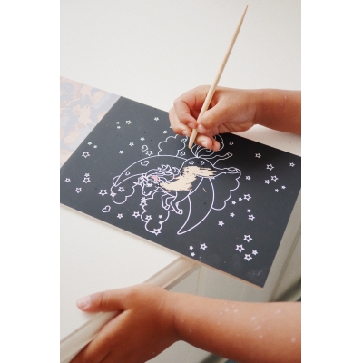 Grâce à ce cahier à gratter, plongez votre enfant dans un monde magique et fantastique!