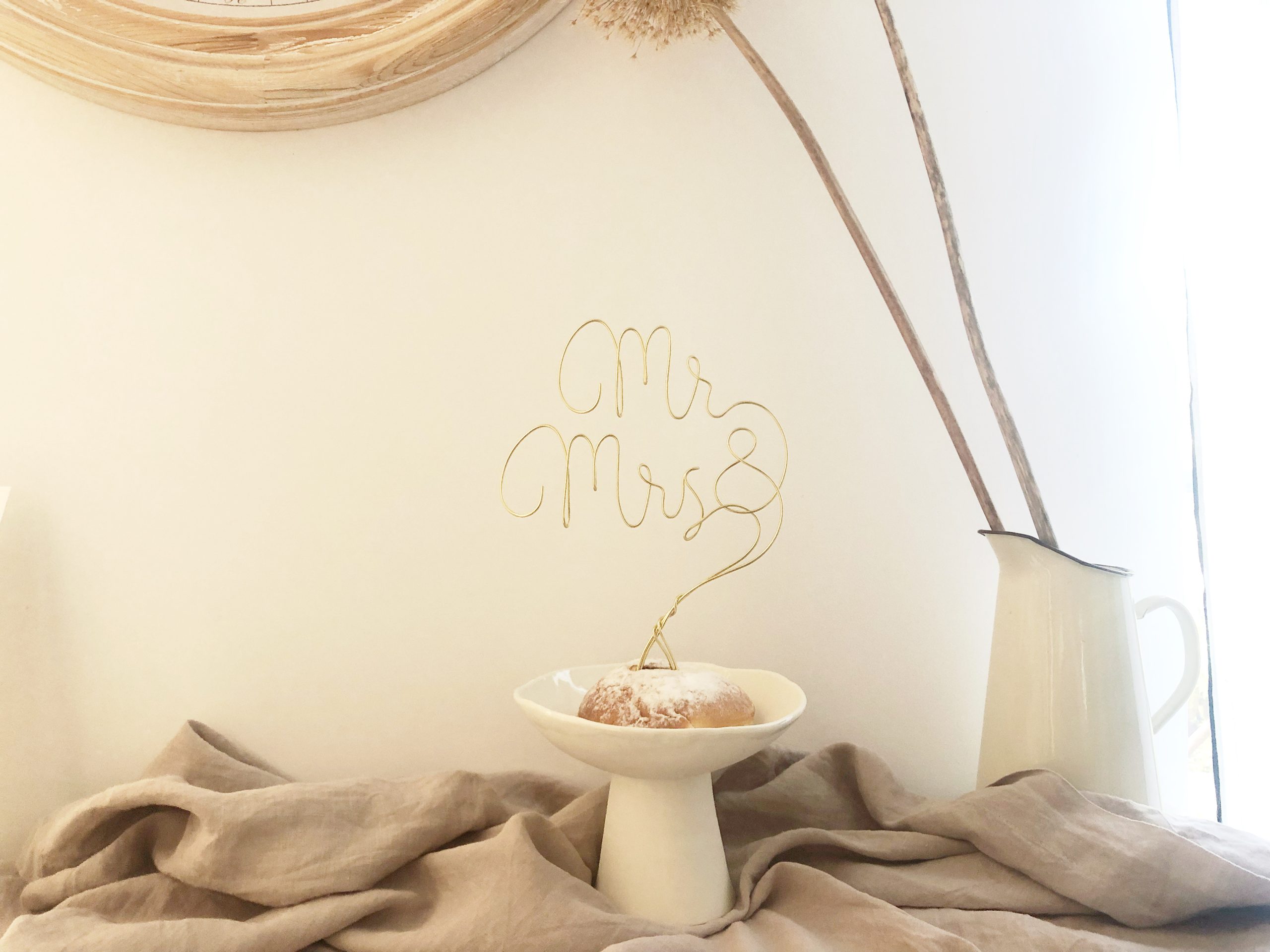 La finesse et la délicatesse de ce cake topper prénom en filaire doré en font un élément de décoration de votre gâteau de cérémonie hors du commun ! Hygge à souhait, dans la tendance du moment.