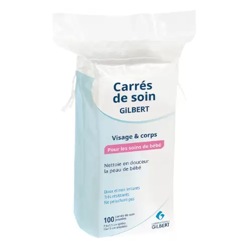 Les carrés sans coton Gilbert facilitent les soins et la toilette du nouveau-né. Résistants, absorbants et non irritants, ils permettent de laver bébé en douceur.