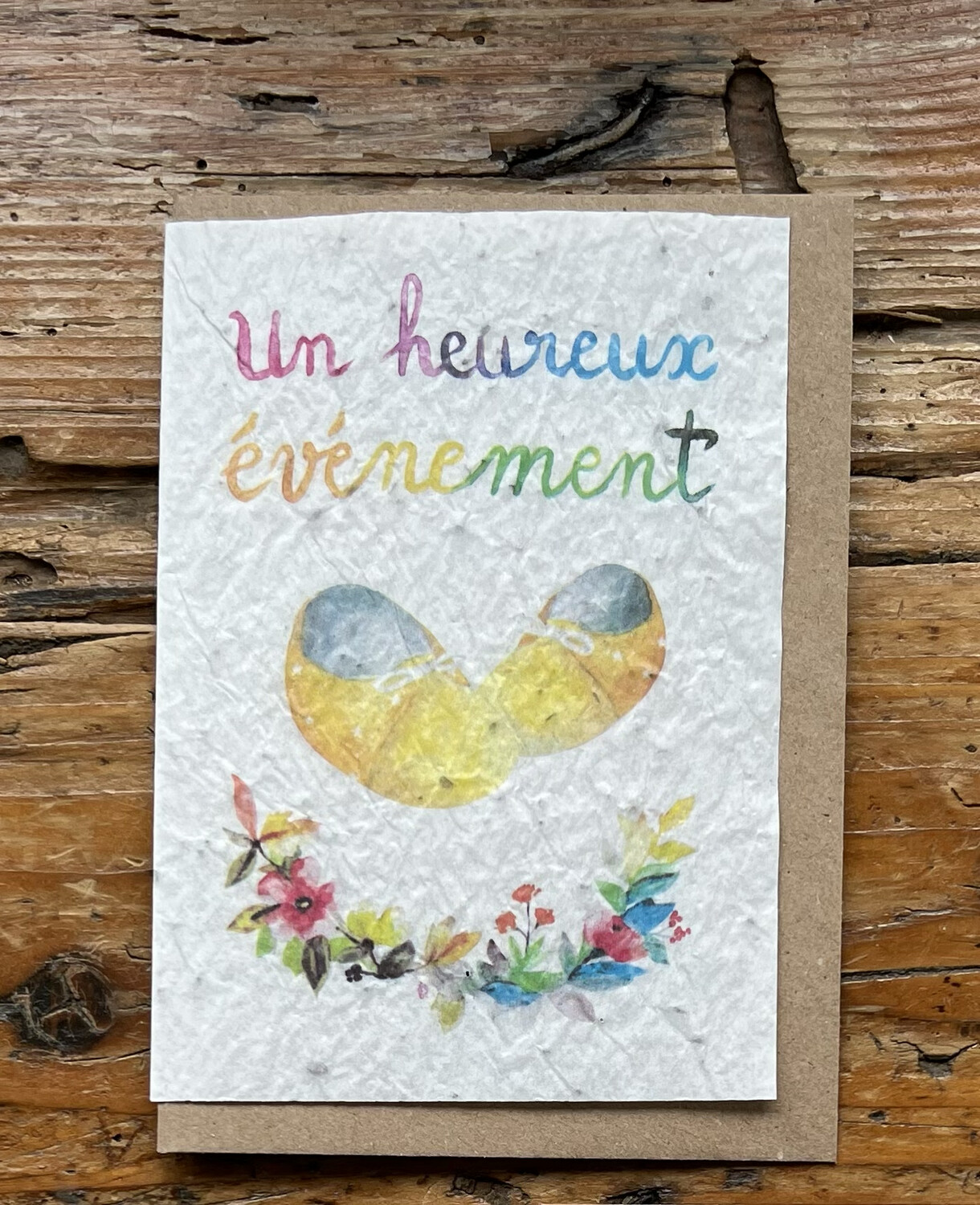 Une jolie carte originale et artisanale, faite sur du papier 100 % biodégradable ensemencé et préparée avec soin.