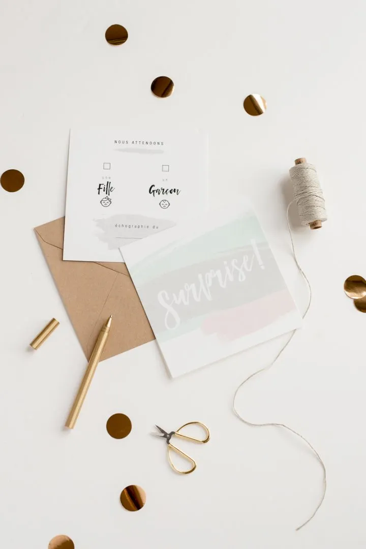 Vous voilà enceinte et vous n’avez qu’une hâte : connaître le sexe de votre futur enfant ! Au lieu de l’apprendre dans la salle d’échographie froide et impersonnelle, vous pouvez demander à votre médecin de cocher la bonne case de notre carte et découvrir la surprise qui se cache dans votre ventre à la maison en amoureux ou bien lors d’une petite fête en famille ! Notre carte « Surprise » peut aussi s’envoyer aux futurs grands-parents ! Carte vendue avec une enveloppe en kraft. Design disponible en 2 coloris : Marsala / Vert Format de la carte : 14,5cm x 14,5…