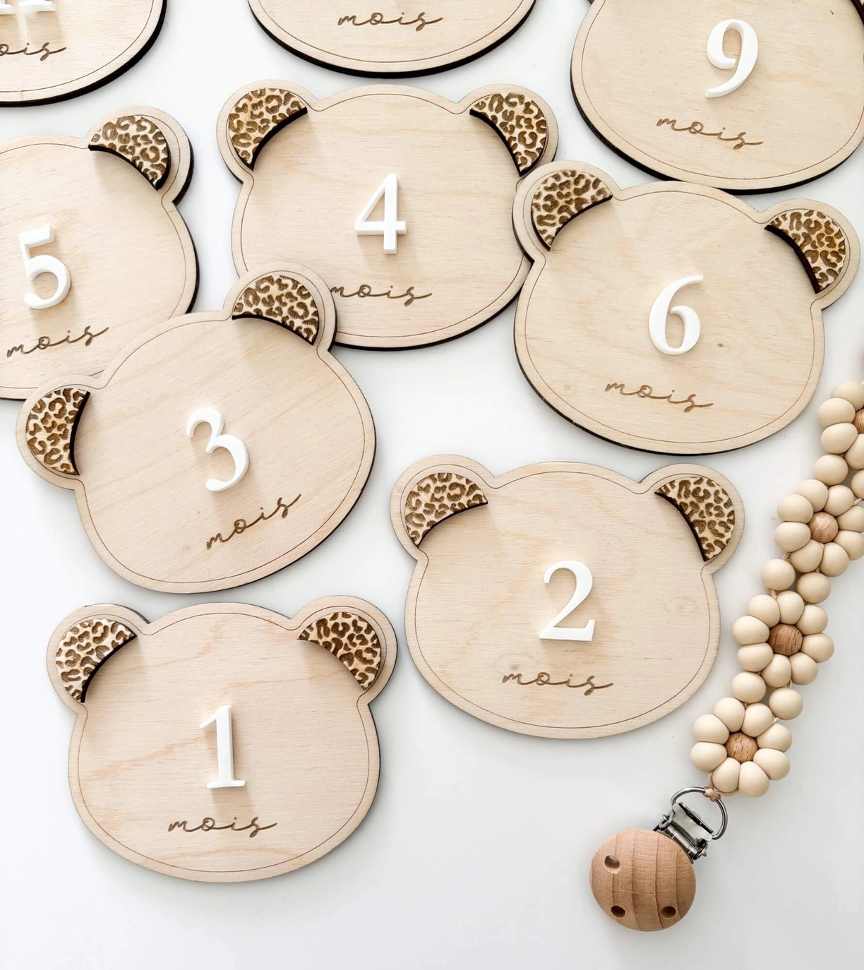 Immortalisez la première année de bébé avec les cartes étapes en bois ourson léopard Expédié sous 7 à 10 jours