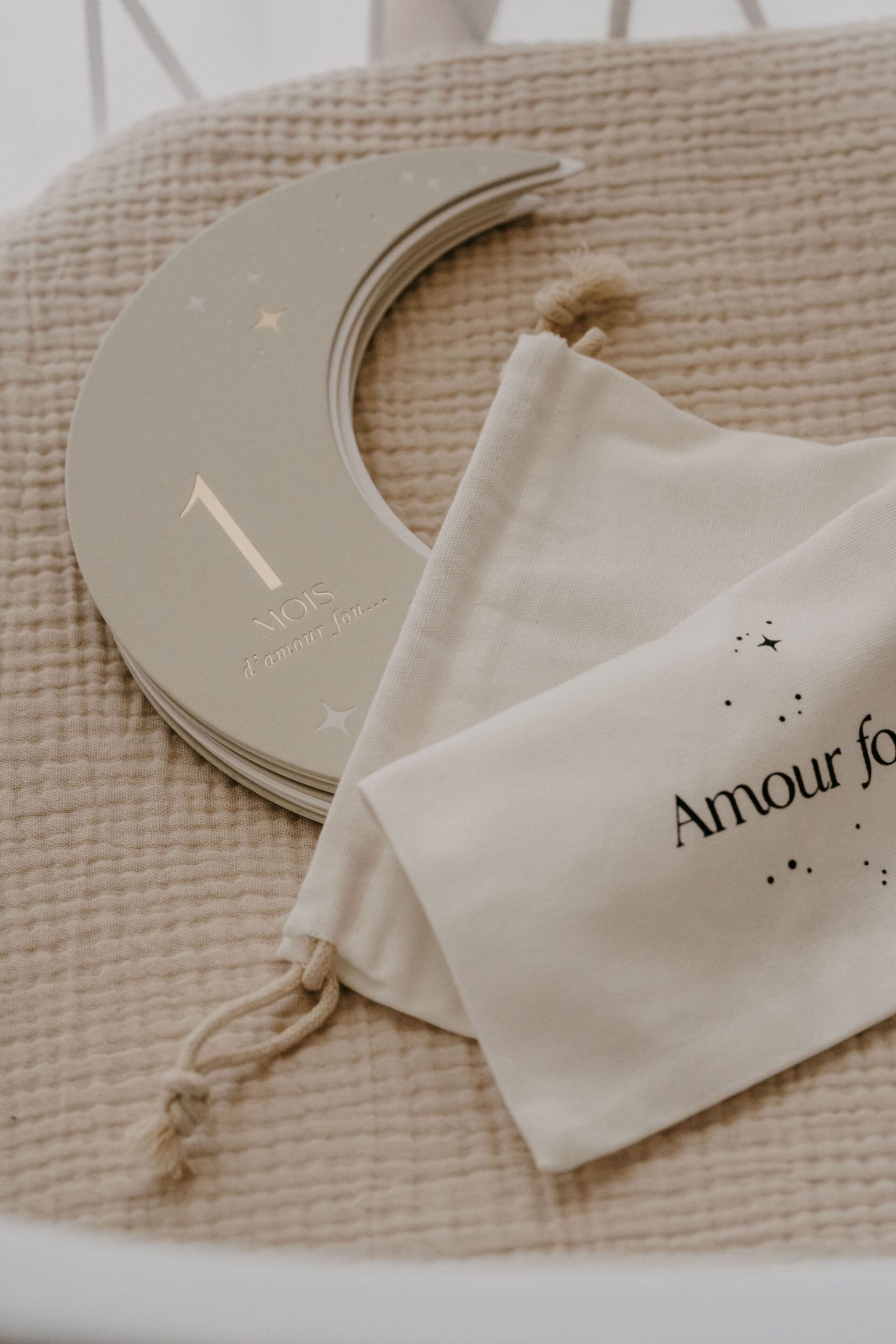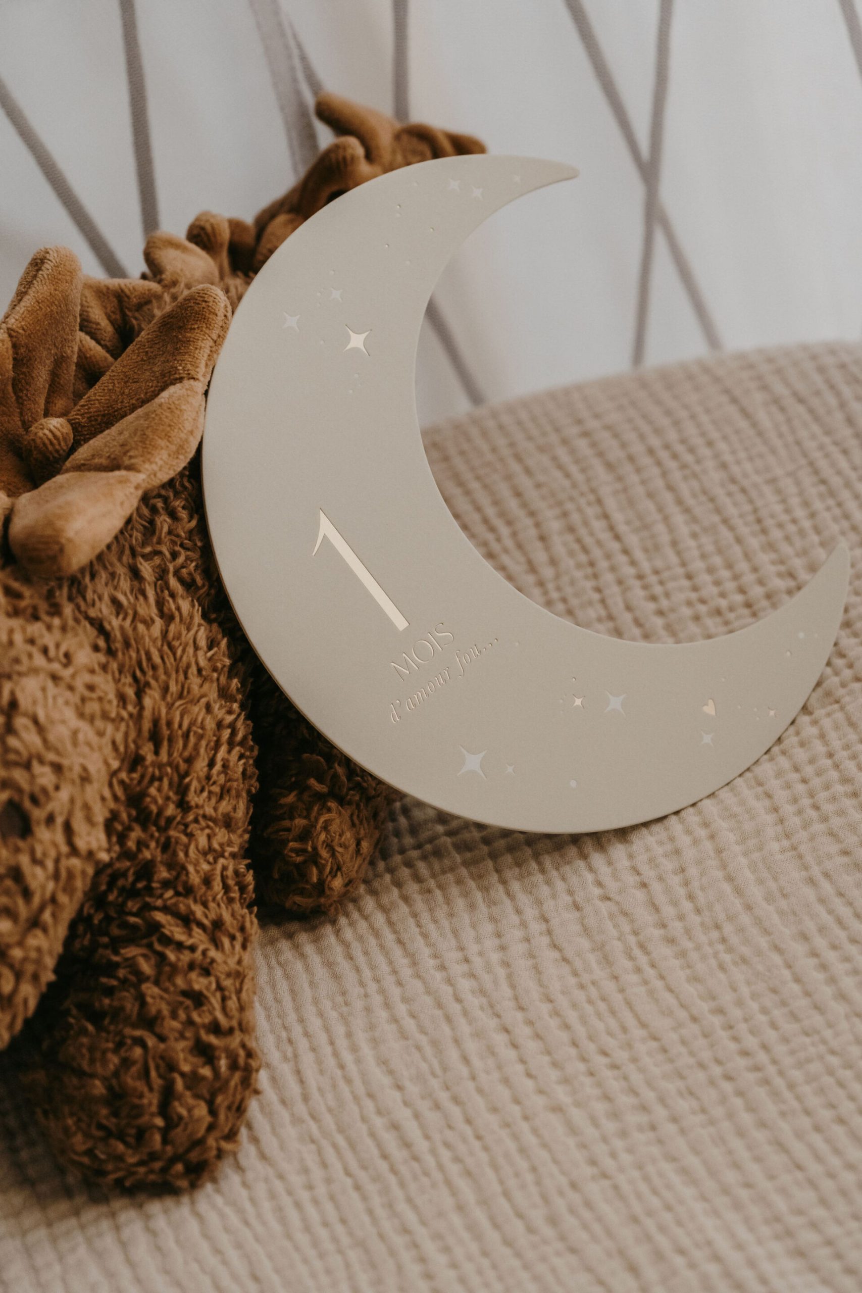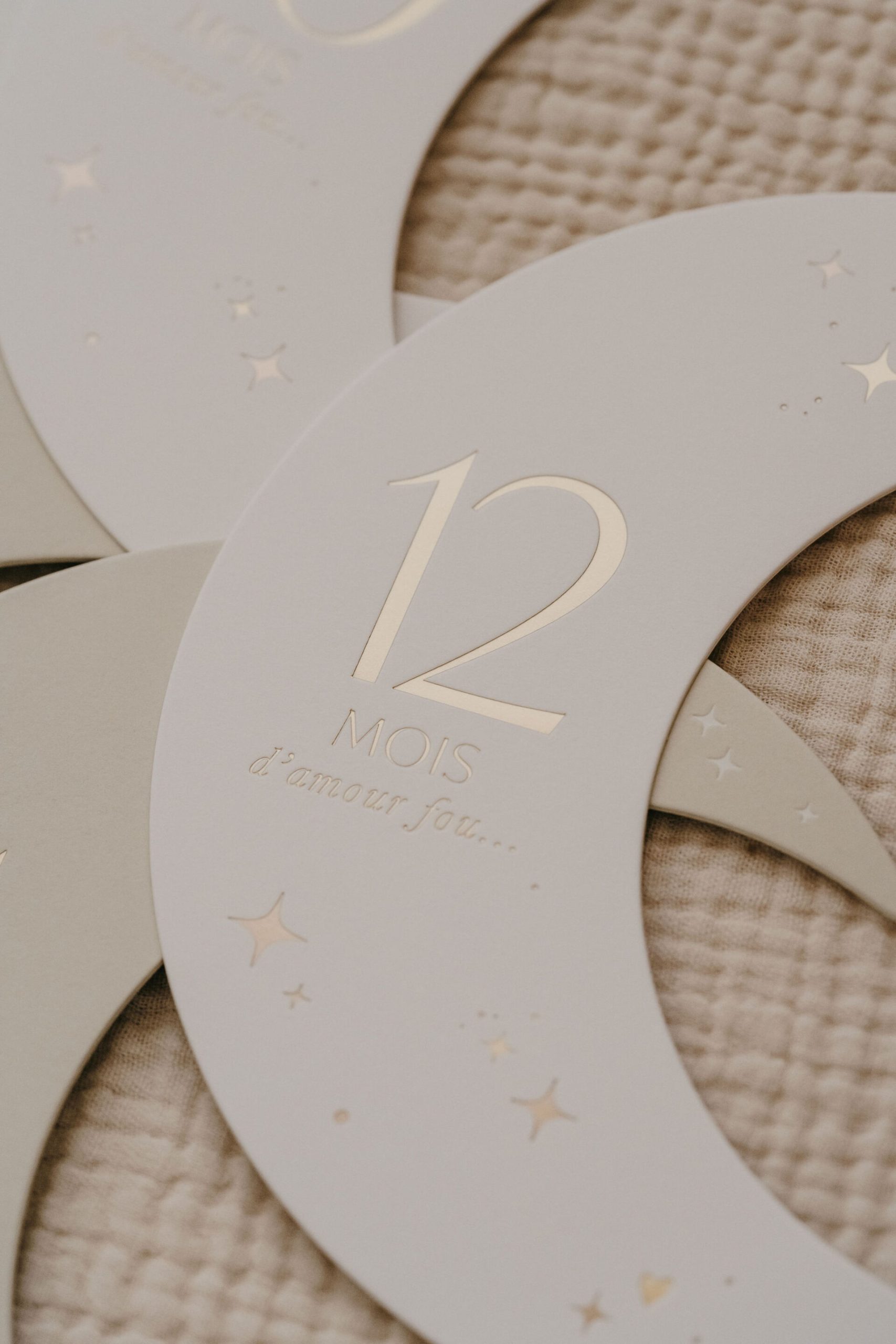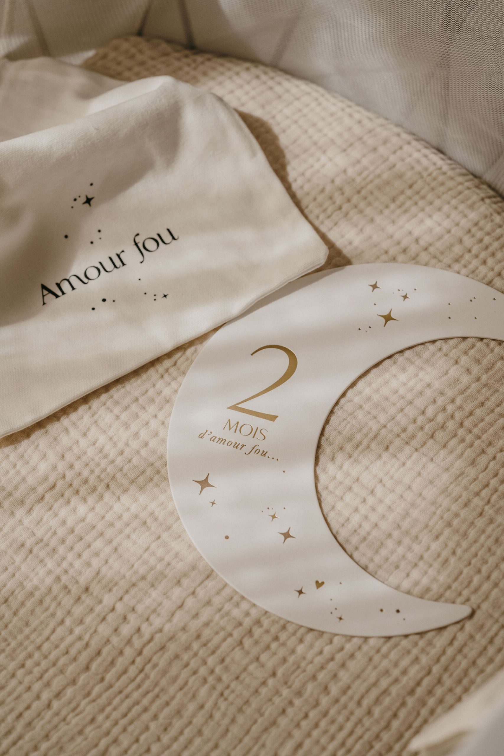 Immortalisez la première année de votre bébé avec le coffret de cartes étapes Moon. Composé de 12 cartes étapes au design poétique, ce coffret vous permettra de prendre de superbes photos souvenirs et d’annoter au dos l’évolution de bébé mois après mois !