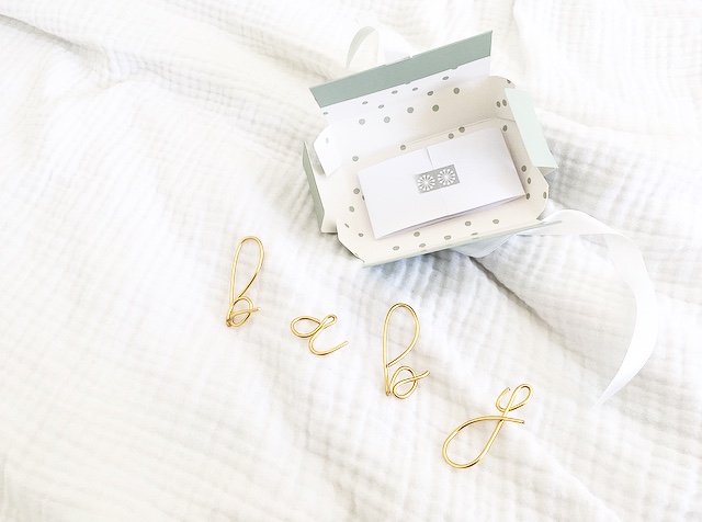 La finesse et la délicatesse de ces lettres en filaire doré « b a b y » sera une manière toute douce et précieuse d’annoncer votre grossesse. D’une originalité absolue !