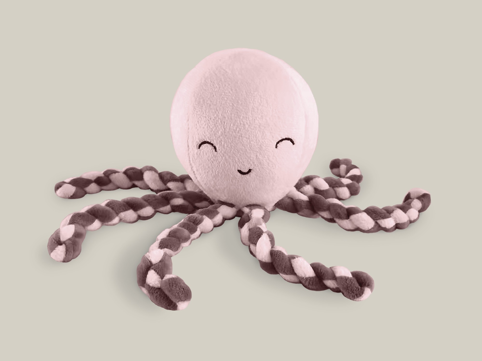 L’animal en peluche est un joli petit pieuvre, le compagnon idéal pour les jeux et les rêves.