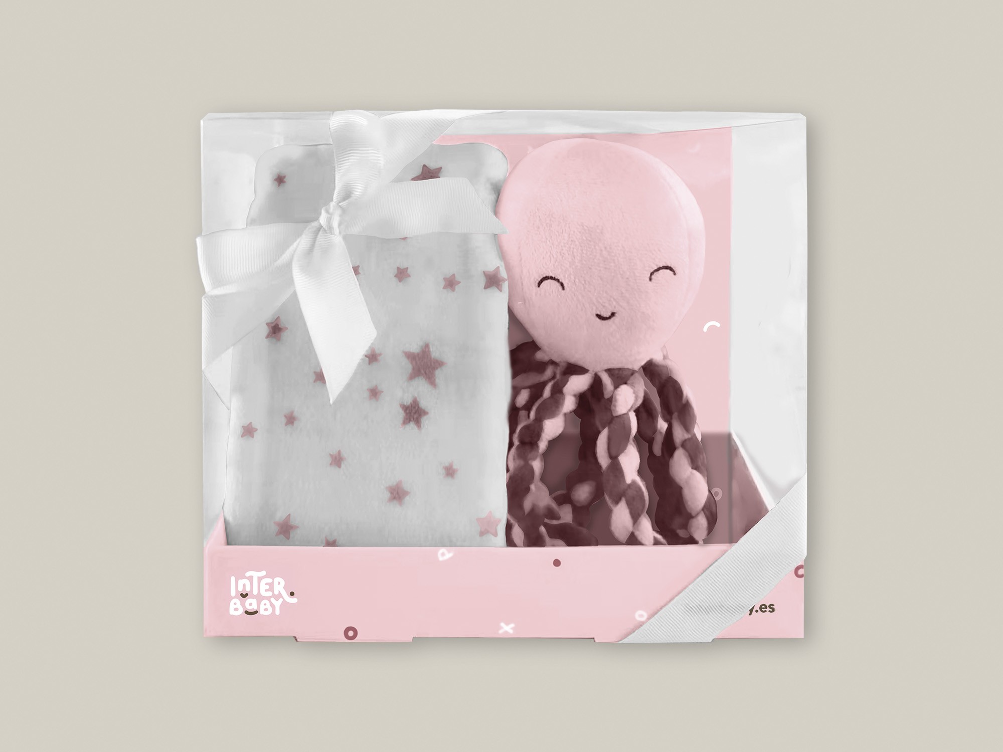 Adorable ensemble de couverture et pieuvre en peluche qui accompagnera sûrement le petit en toutes circonstances.