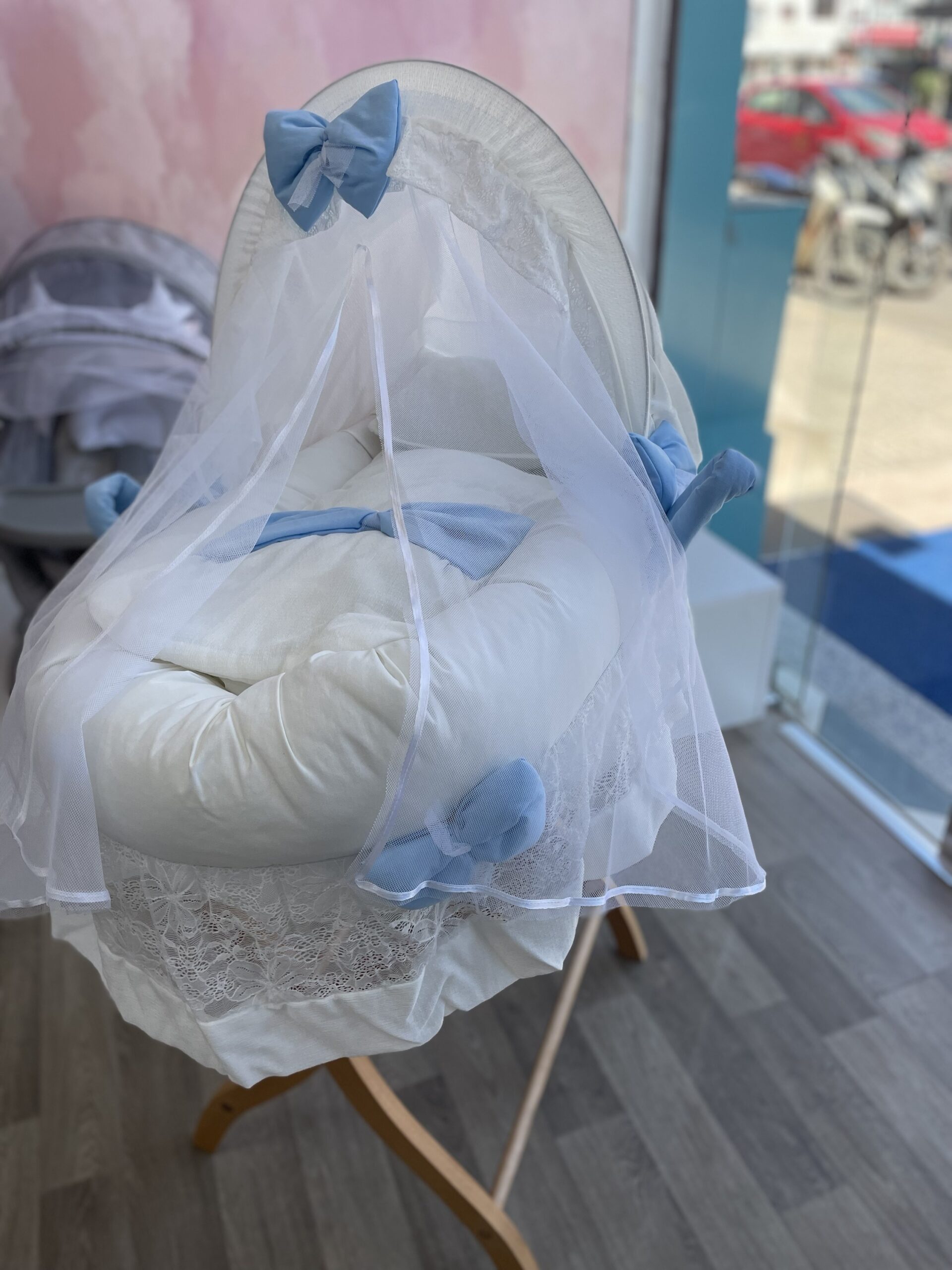 Ce couffin douillet est livré avec l’habillage intérieur : un matelas , un petit édredon et un oreiller. Tous ces éléments sont enveloppés de coton bio .