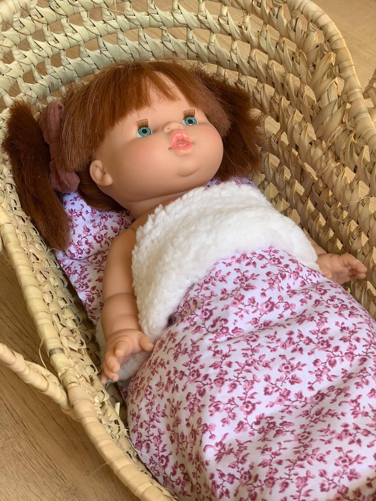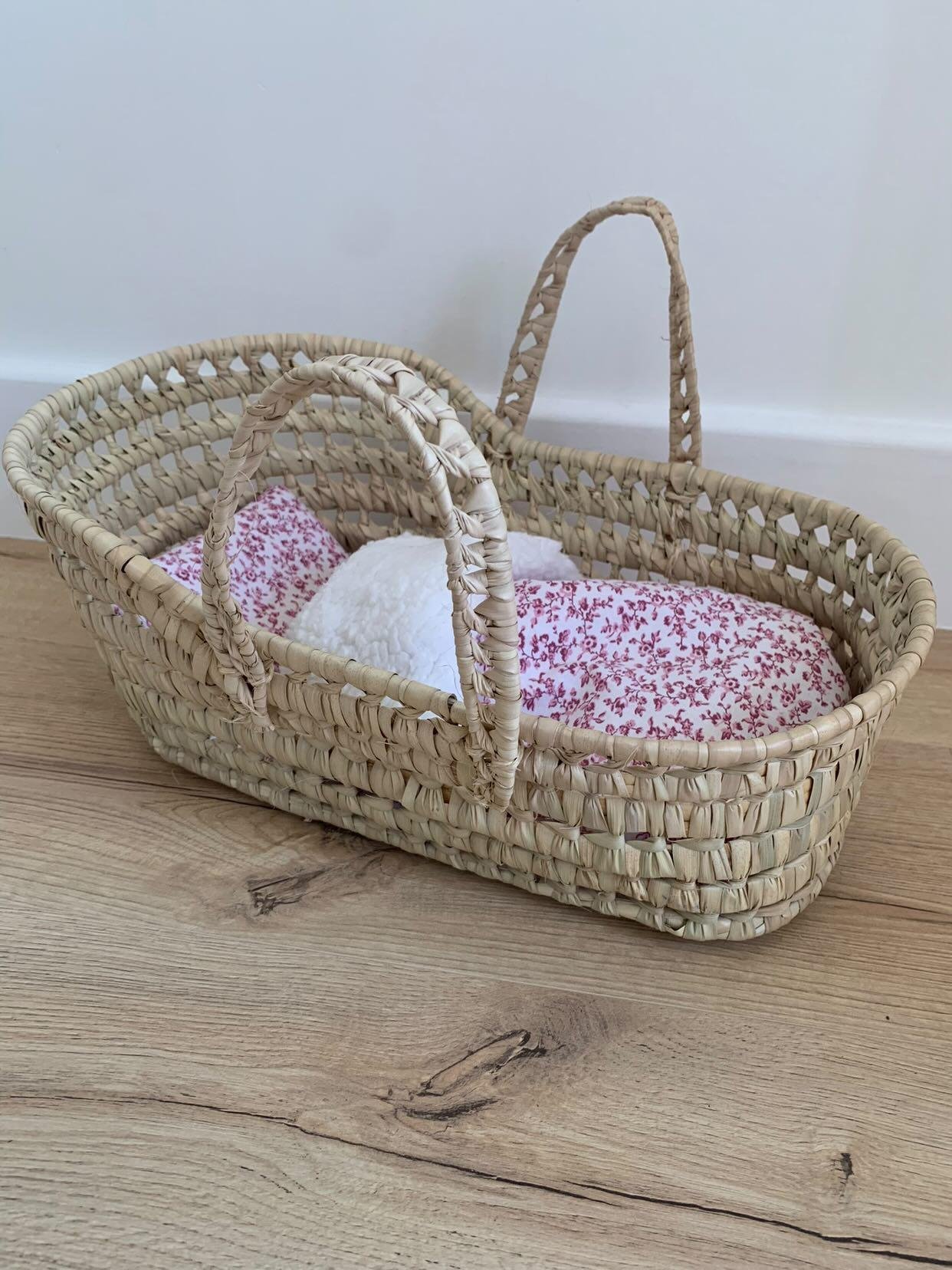 Couffin pour poupée avec sa literie fait main – Fleurs roses