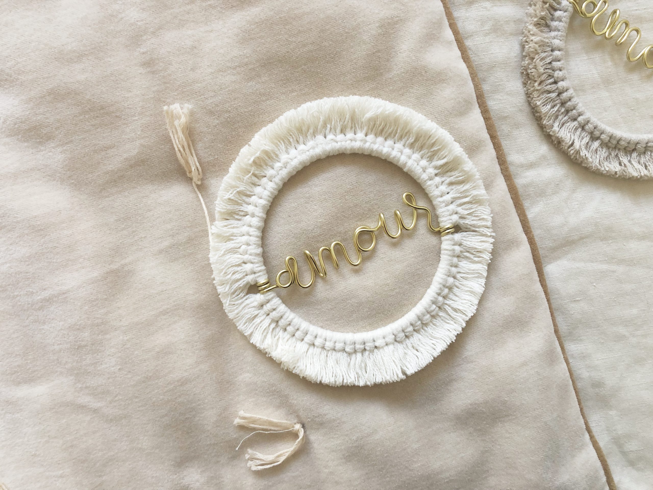 La finesse et la délicatesse de cette couronne macramé en filaire doré « amour », en font un élément de décoration de votre intérieur ou de la chambre de votre enfant, hors du commun ! Hygge à souhait, dans la tendance du moment.